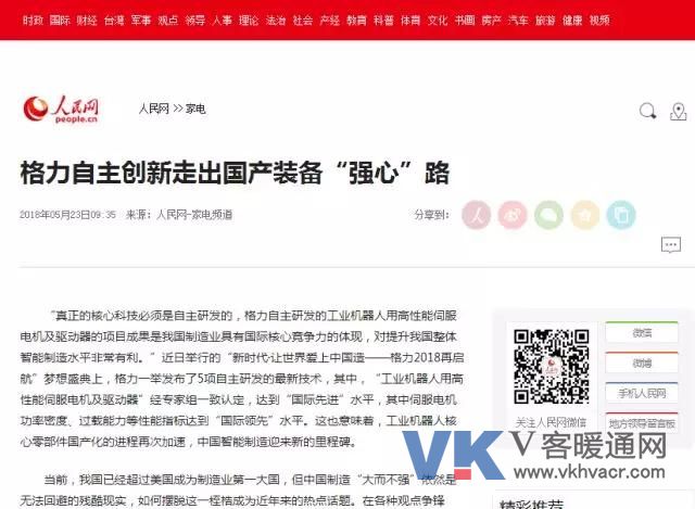 人民网:格力自主创新走出国产装备“强心”路