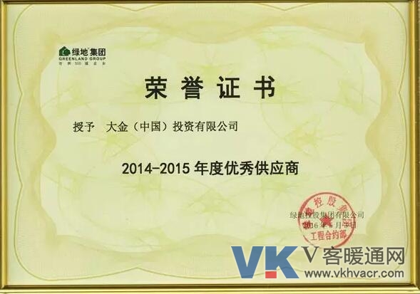 大金空调荣获绿地集团 “年度优秀供应商”荣誉称号
