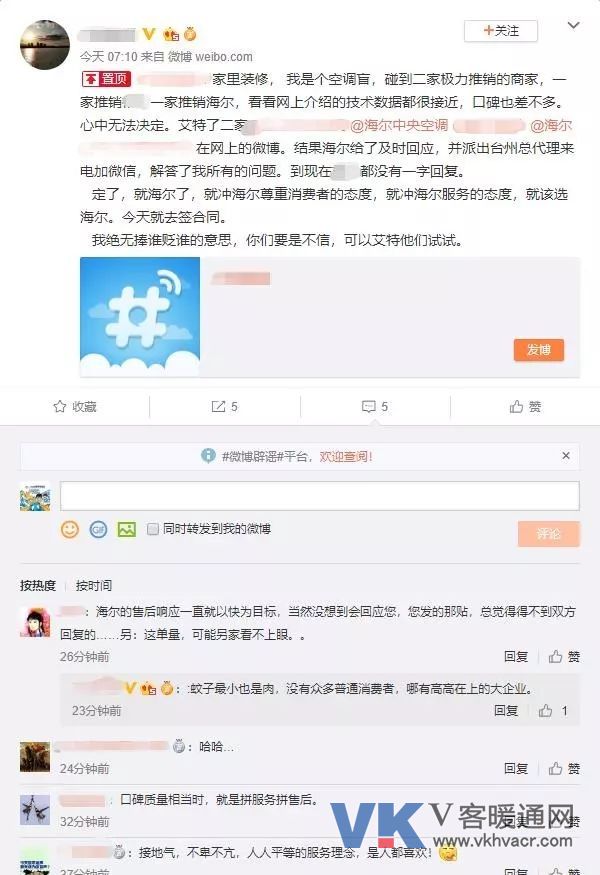 一条微博“签”出一段缘!海尔中央空调“分钟级”服务获网友点赞