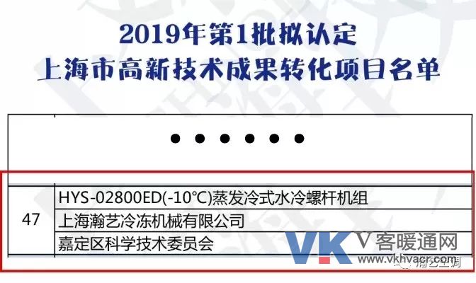 瀚艺蒸发冷机组获上海市高新技术成果转化项目认可