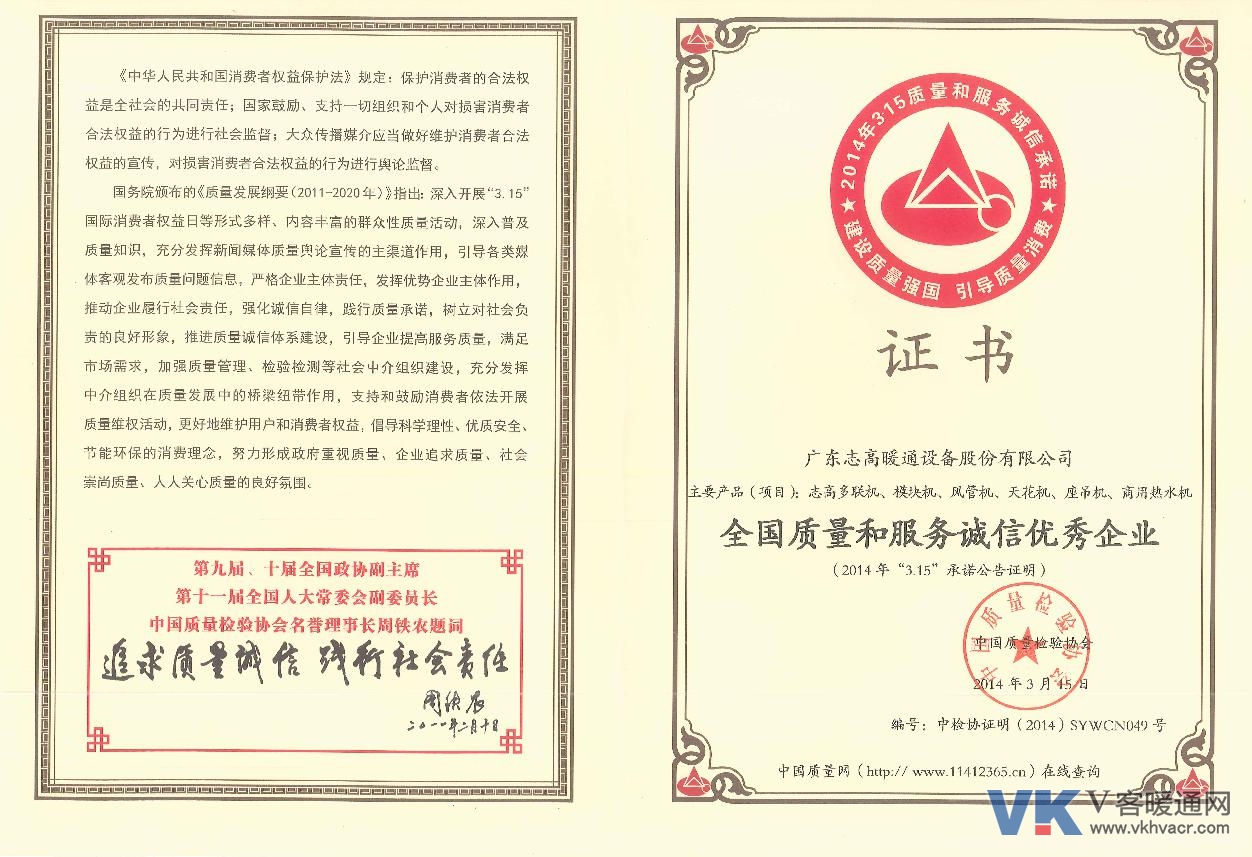 日前,从北京传来消息,在中国质量检验协会主办的2014年“3·15”国际消费权益日“质量和服务诚信承诺”专题活动中,志高中央空调被授予“