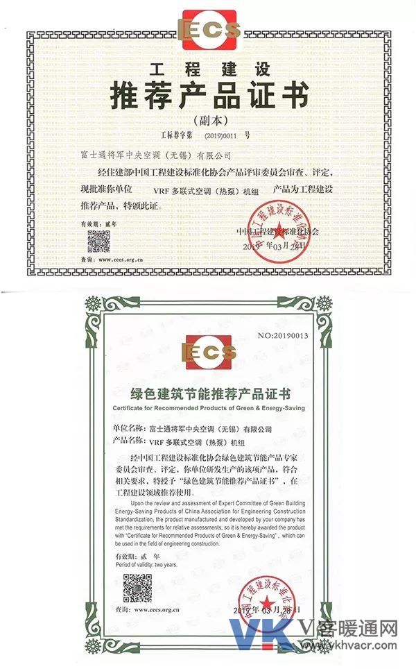 富士通将军中央空调同时获得工程建设和绿色建筑节能两项证书