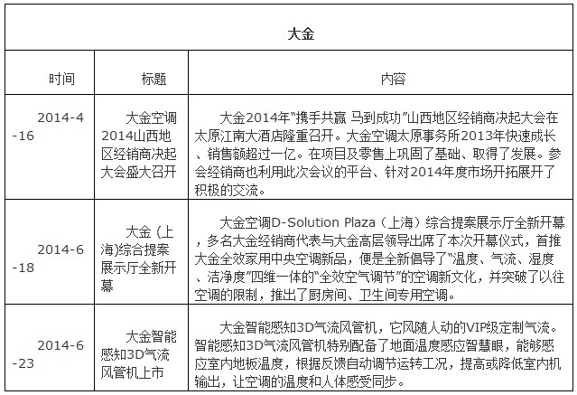 2014年二季度,日系品牌中央空调继续在“高端品质”上发力,大金智能感知3D气流风管机上市,能够感应室内地板温度,根据反馈自动调节运转工