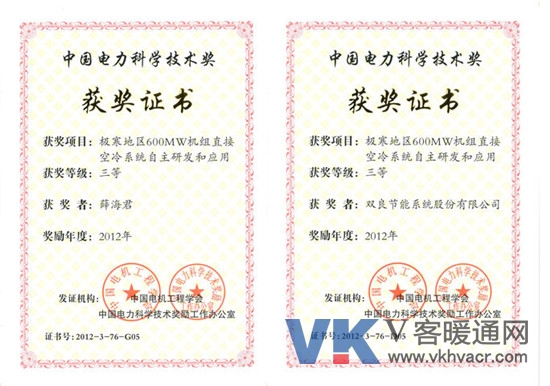近期,由中国电机工程协会向双良节能系统股份有限公司及其空冷器事业部副总经理薛海君先生颁发了中国电力科学技术奖------“极寒地区600M
