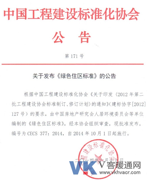 2014年6月19日,中国工程建设标准化协会发布公告,由中国房地产研究会人居环境委员会主持编制的《绿色住区标准》正式通过审查,批准发