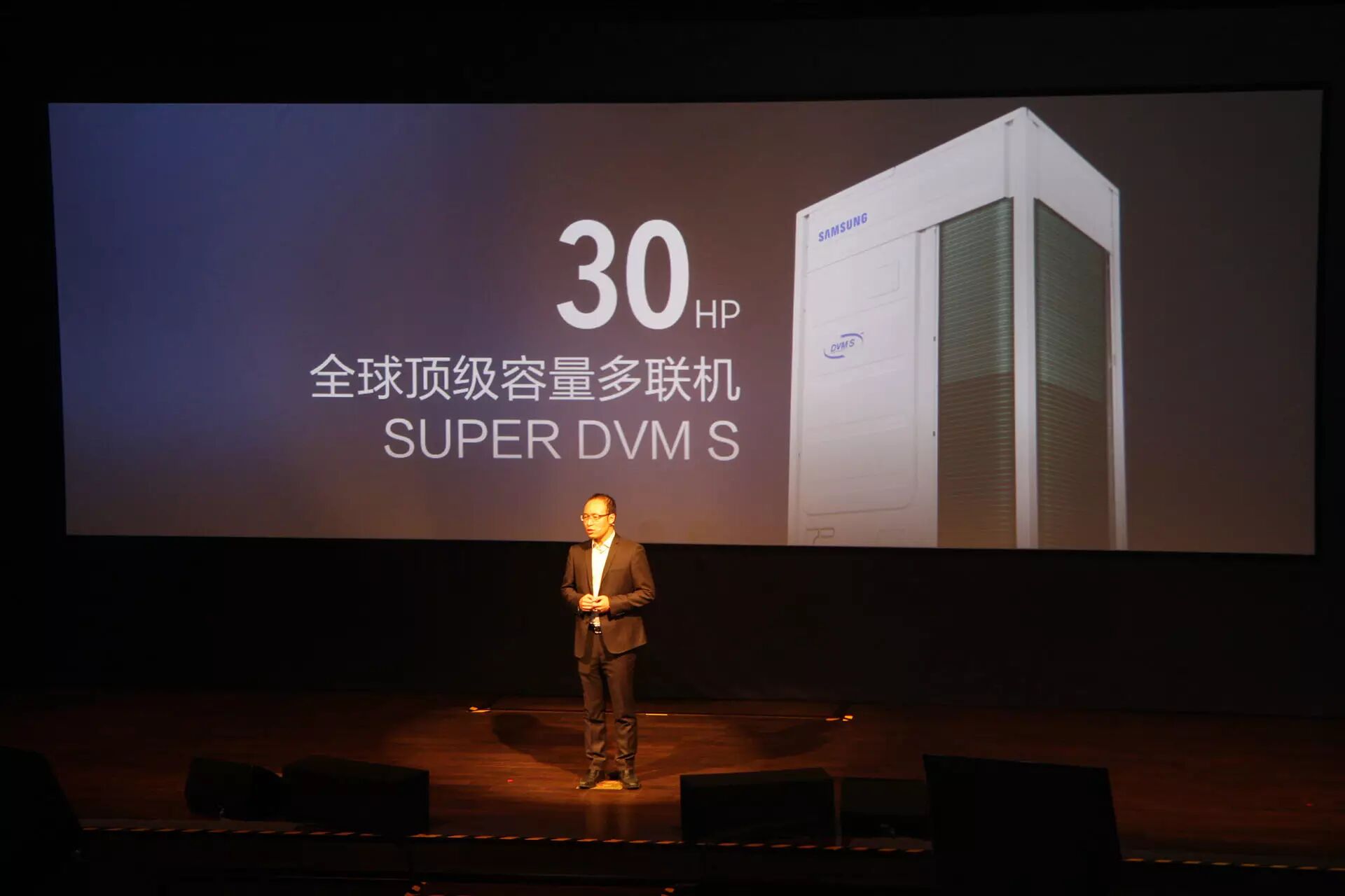 接下来最新发布了SUPER DVM S系列。30HP全球顶级容量多联机SUPER DVM S,单模块可节省40%对的空间,从而创造更多的效益。轻量化设计,比双模块机组减小28%重量,也更利于固定和稳固。采用不对称是线性壁厚涡旋盘设计,高效式换热器,使气流通过更加均匀。