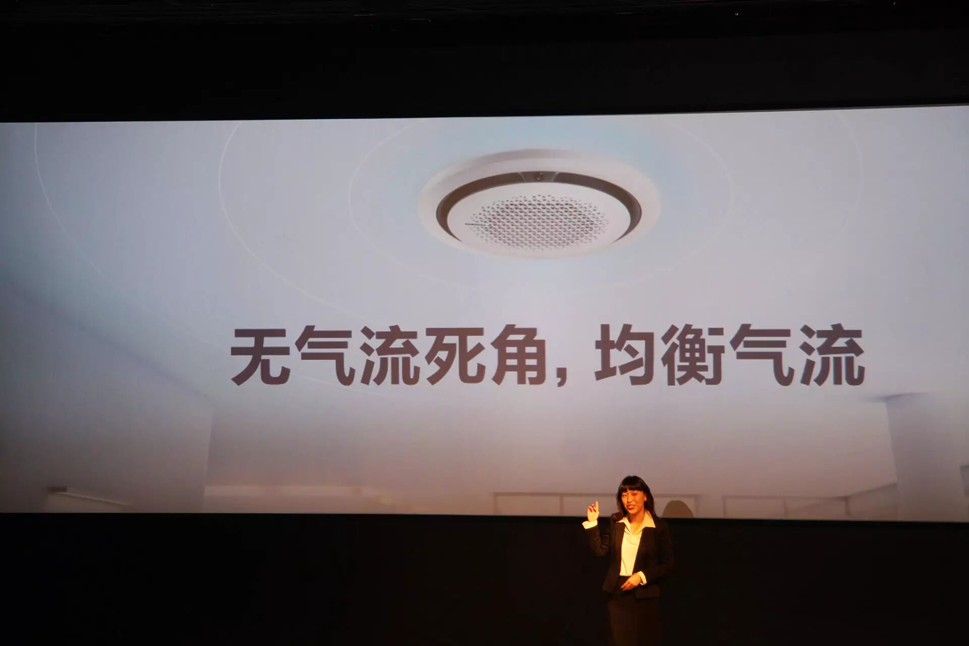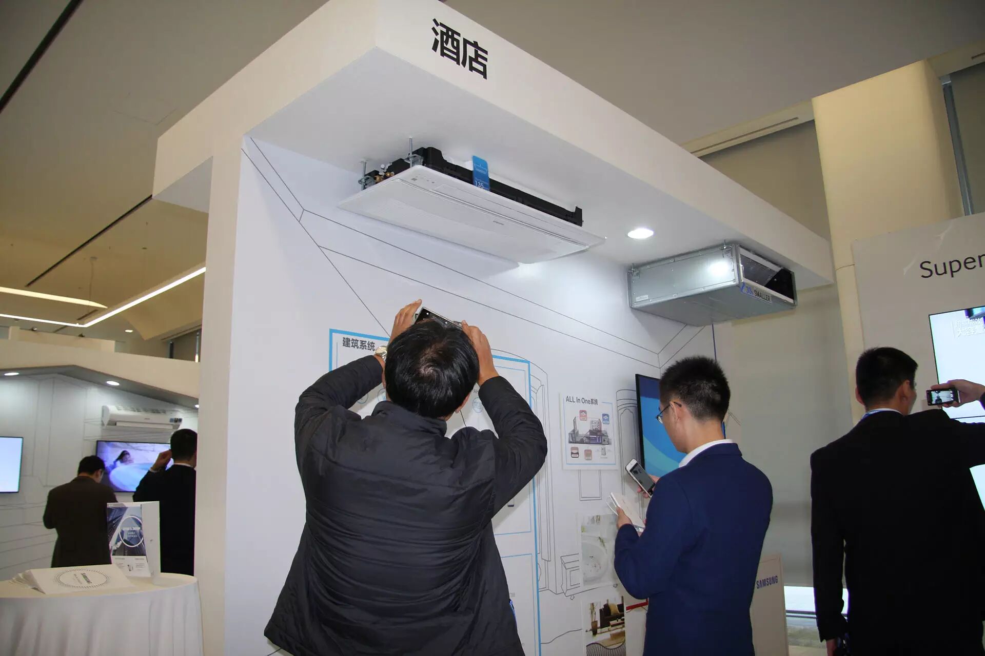 在SAMSUNG AC FORUM2015现场,强势推出一款优质创新产品——360度嵌入式室内机。整体圆形设计让产品完美融入任意场所。利用革新技术空气百叶和360度环绕出风口,颠覆传统,大胆去除空调固有的百叶结构,无气流死角,均衡室内的气流分布,形成几乎为0的风量损失、39%气流扩散面积的产品强劲优势,为用户创造更无吹风感、舒适的新鲜气流,完成最自然的空间享受。均衡、舒适的气流及时尚设计,让这款产品无论外观、还是技术,都让人耳目一新。