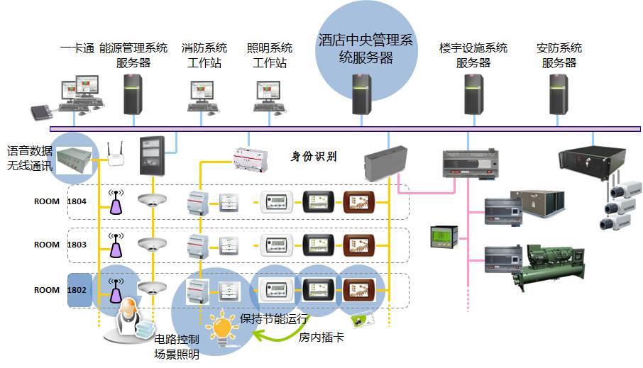 通过综合楼宇控制技术的实施,可以达到对每种机电设备的精细操作,将节能工作落实到实处,充分发挥每台设备的最高效率,同时延长设备使用寿命,降低酒店运营成本,减少对生态环境的污染。智能化的酒店设施将为人们提供便捷、舒适、节能、安全和人性化的服务感受,而智能改造更是酒店转型期最主要的发展方向。