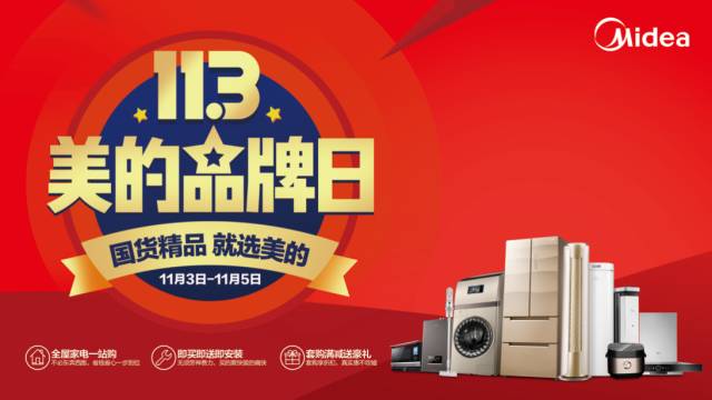 113美的品牌日,一年一度的家电购物狂欢节。美的在全国范围内展开全媒体、立体化的宣传攻势。全面覆盖线上线下,联合造势宣传。