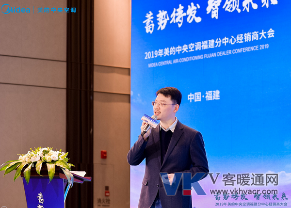美的中央空调福建产品分中心总经理史衍鹏先生先为大家回顾了2018年福建美的暖通的主要业绩:福建分中心2018年同比增长21%,其中大机产品同比增长高达121%;模块机增长51%;照明产品增长53%;商热产品增长40%;大多联增长39%,小多联增长5%;后针对当前区域的不足做了专业的分析,从工程产品线、零售产品线、房产精装配套、团队能力提升四个方面做了详细的2019年新规划。