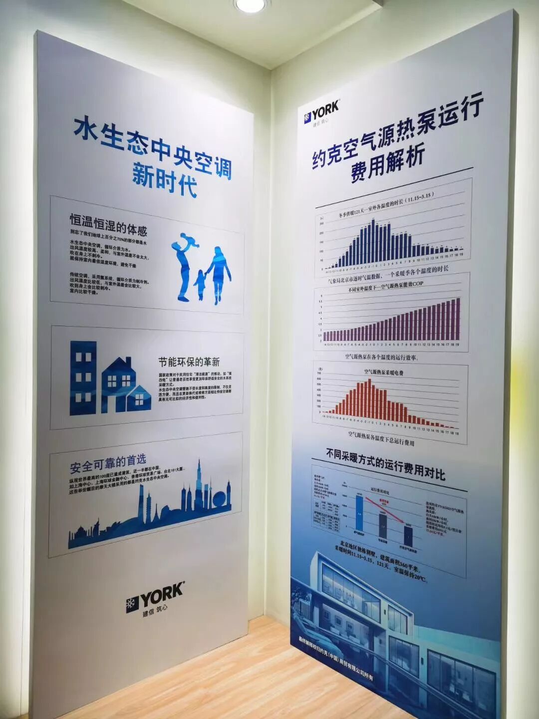 约克水生态中央空调能够实现空调地暖二合一,一机多用,以水为媒介,无传统化学制冷剂泄露的风险,同时相比一般采暖方式,运行费用更低,使用更舒适,十分契合本届中国住博会以“城乡建设绿色发展”的主题。